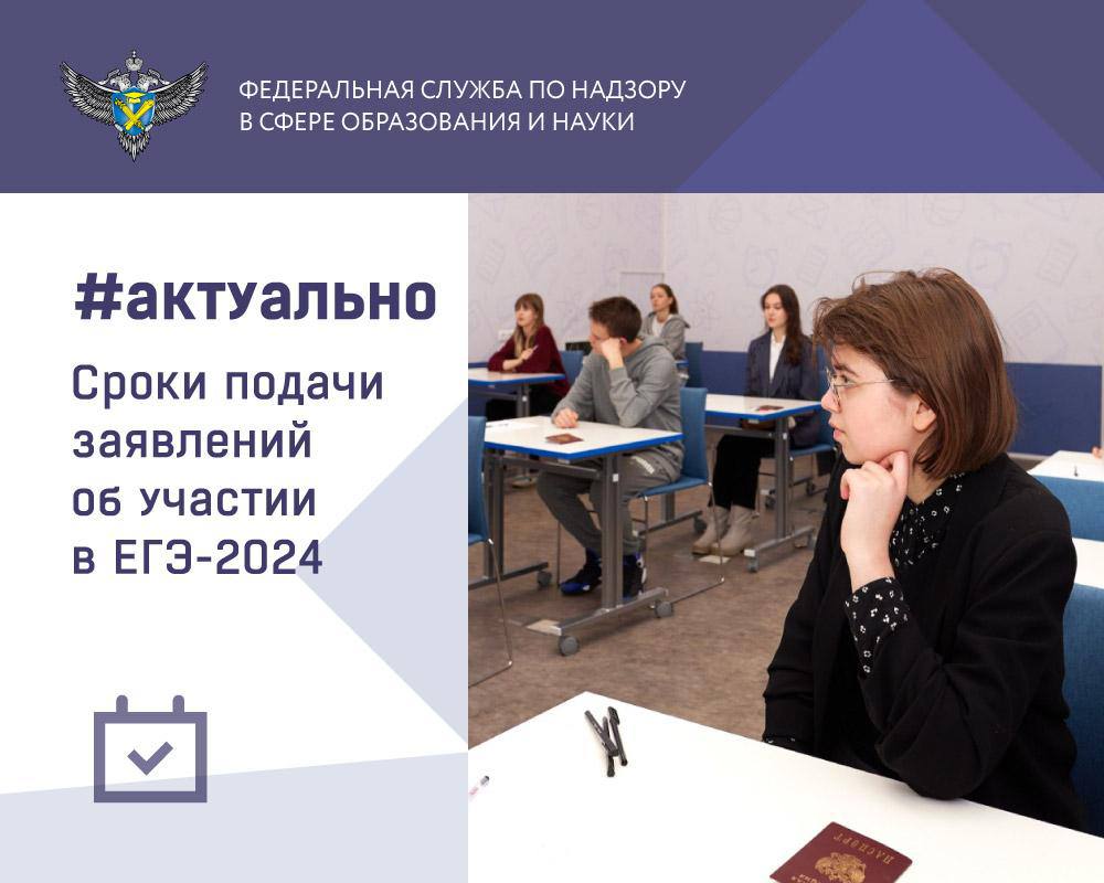 Федеральная служба по надзору в сфере образования и науки напоминает, что заявление об участии в ЕГЭ 2024 года необходимо подать до 1 февраля включительно.