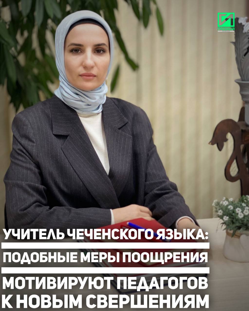 Учитель чеченского языка Центра Образования им. Ахмата-Хаджи Кадырова Луиза Исраилова в беседе с корреспондентом «Грозный-информ» рассказала, что предложение зампред Правительства ЧР Айшат Кадыровой и первого заместителя Руководителя Администрации Хадижат Кадыровой, поощрить всех учителей чеченского языка денежными премиями и вручить высокие награды наиболее отличившимся педагогам, вызвало широкую поддержку среди общественности и образовательного сообщества ЧР.