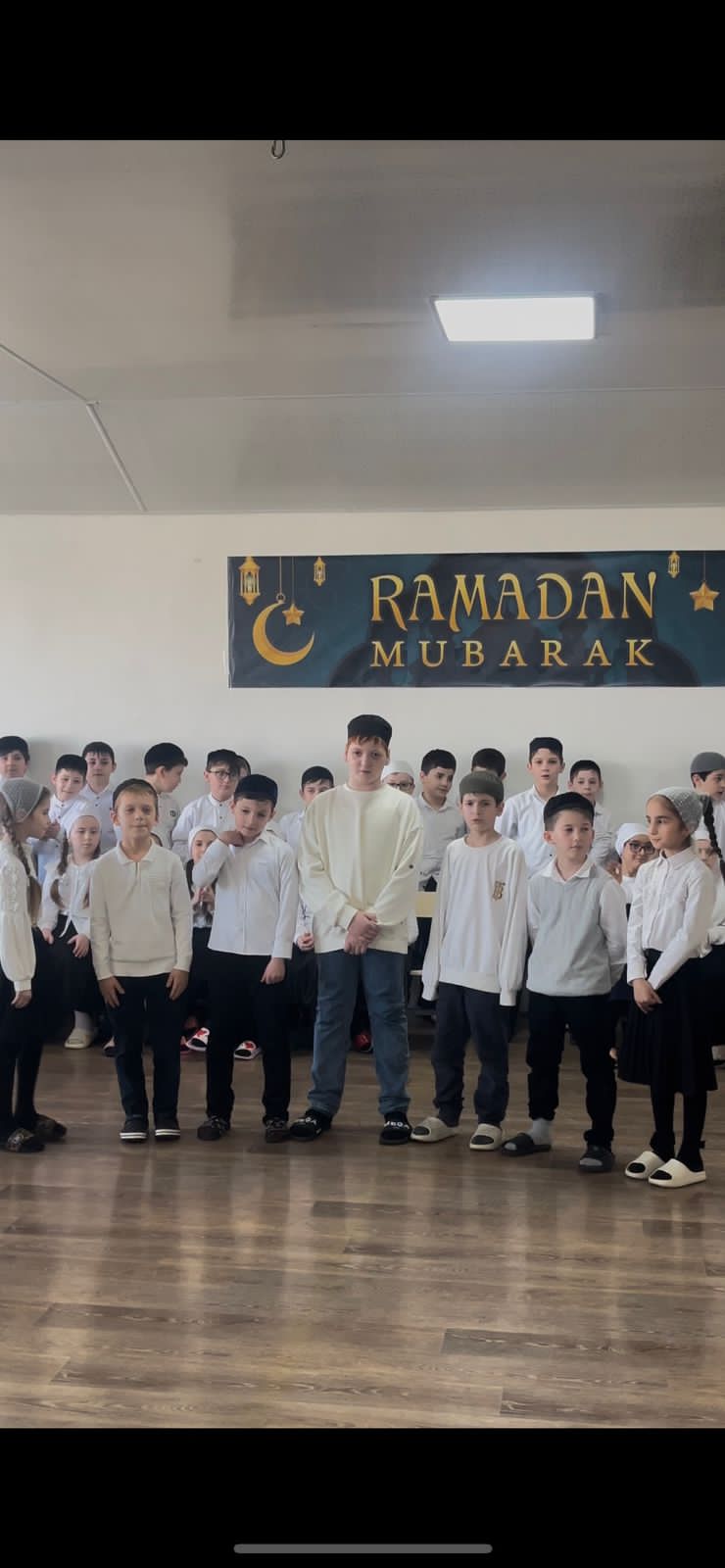 Сегодня в нашей школе проходило мероприятие, посвященное месяцу Рамадан. Учащиеся рассказывали стихи, пели нашиды, читали наизусть суры, отвечали на вопросы о жизни пророка Мухаммада (с.а.с.).