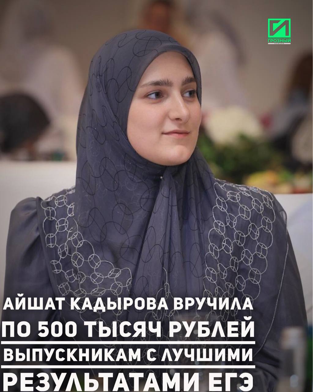 Заместитель Председателя Правительства Чеченской Республики Айшат Кадырова вместе с министром образования и науки ЧР Хож-Бауди Дааевым наградила чеченских выпускников, набравших наибольшее количество баллов по результатам ЕГЭ.