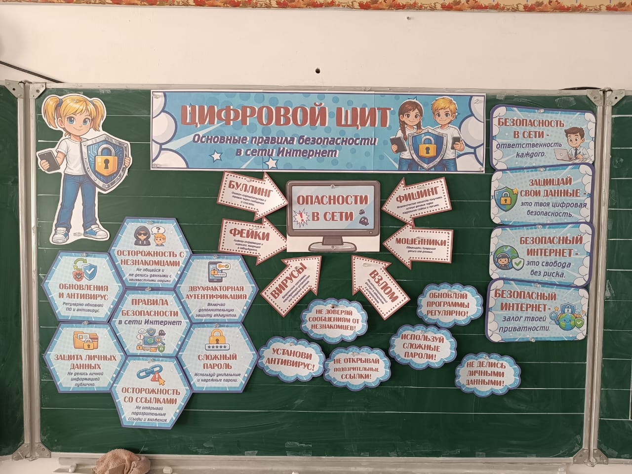 С целью реализации проекта «Разговоры и важном» в гимназии прошли занятия на тему :»Цифровой щит». С целью ознакомлениями с основными правилами безопасности в сети Интернет, осмысления понятия «кибергигиена»; расширения представлений об основных видах киберугроз и способах противодействия им; формирования у обучающихся осознанного отношения к цифровой среде как к пространству, требующему личной ответственности; формирование осознанной взаимосвязи между личной цифровой гигиеной и безопасностью государства; развития критического мышления и цифровой грамотности.